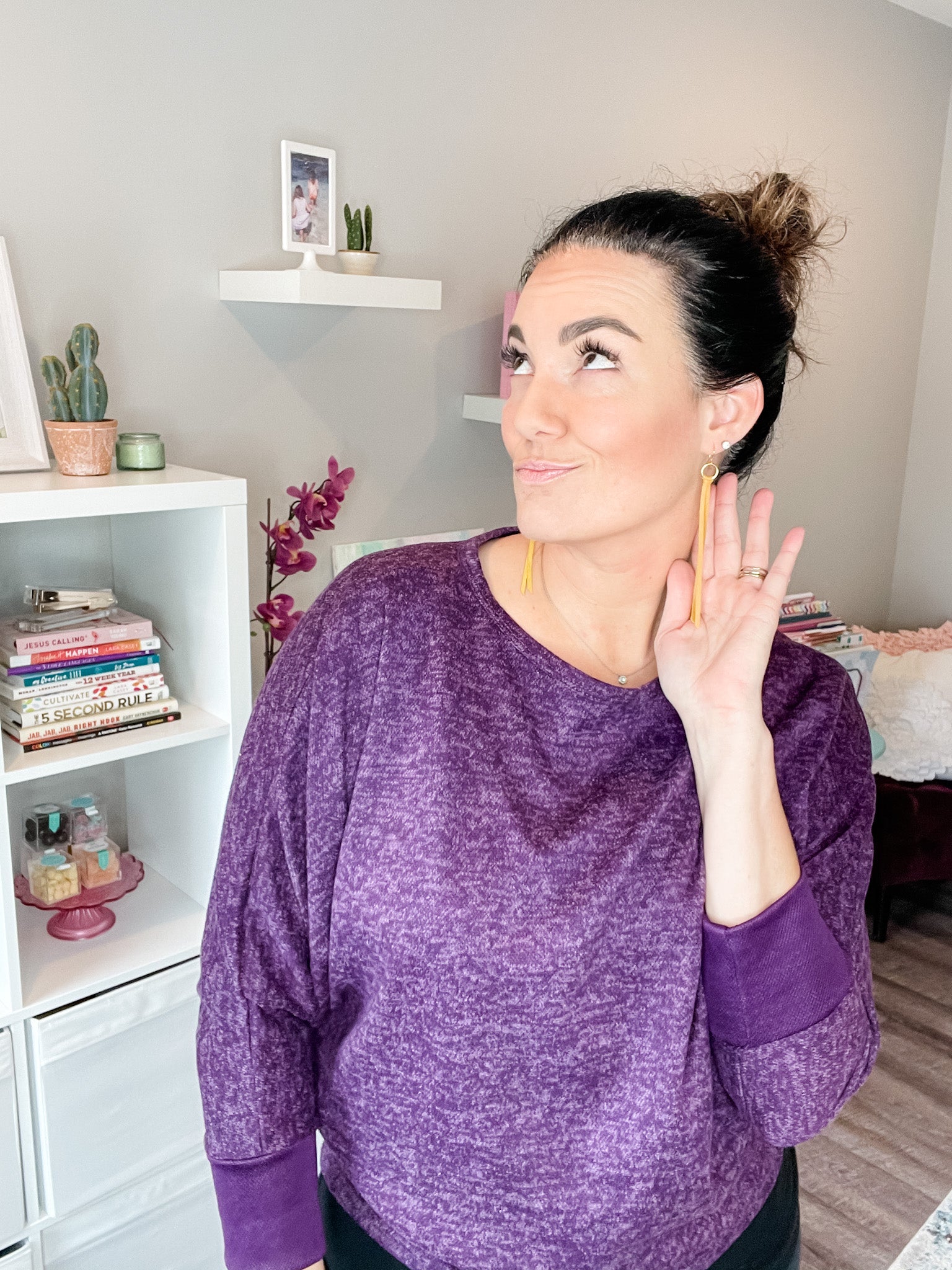 We recommend wearing this marigold earring with teal, purple, or blue tops.